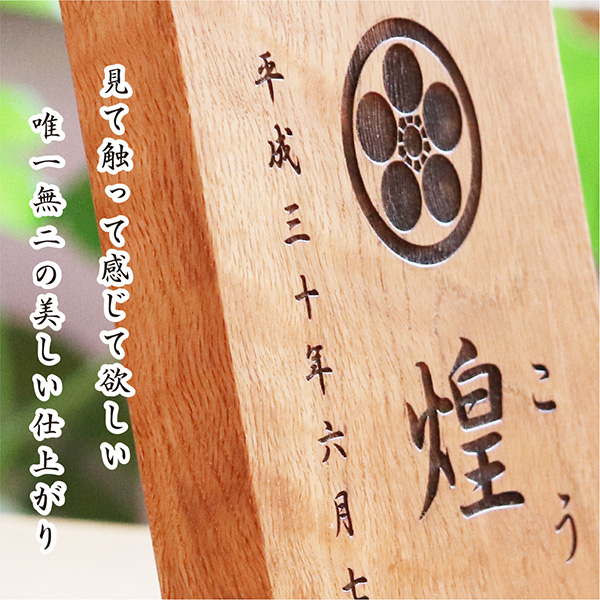 しっかりした高級感あふれる命名札・名前札です。職人が一つ一手仕上げいたします。