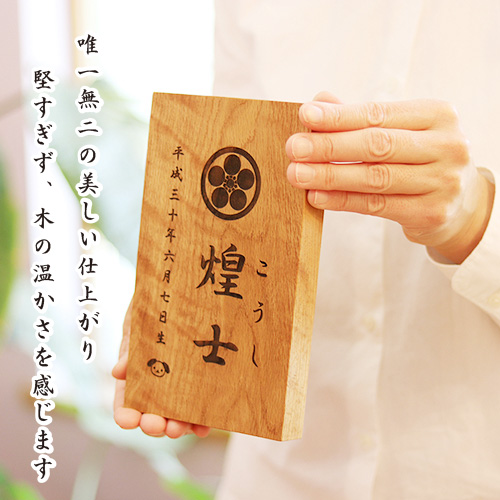 しっかりした高級感あふれる命名札・名前札です。職人が一つ一手仕上げいたします。